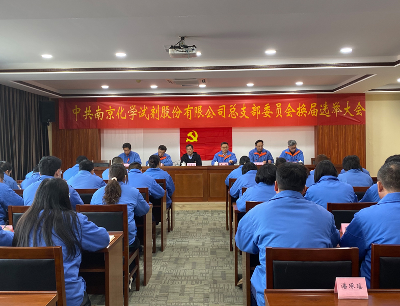 12月26日,南京試劑黨總支委員會換屆選舉會議在公司三樓會議室召開,會議由總支委員、總經理王志剛主持,黨員、預備黨員45人參會。江北新材料科技園機關黨總支副書記楚屏玉、綜合管理部祁慧等同志出席。