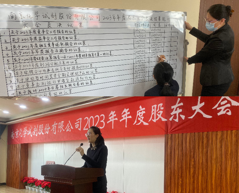 2月27日上午,南京試劑2023年年度股東大會召開。股東、股東代表、董事、監(jiān)事、高管和上海錦天城(南京)律師事務(wù)所律師代表等30余人出席。