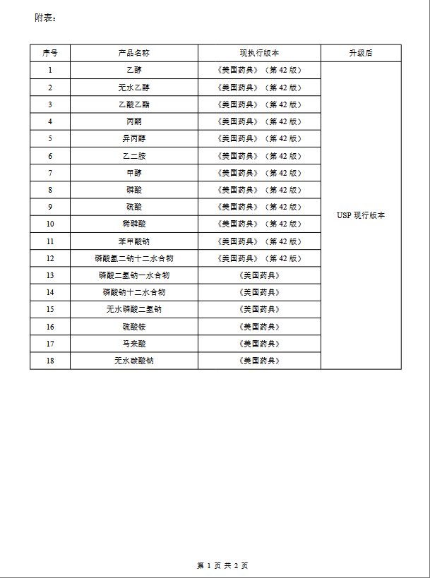 藥用輔料產品《美國藥典》質量標準變更告知函